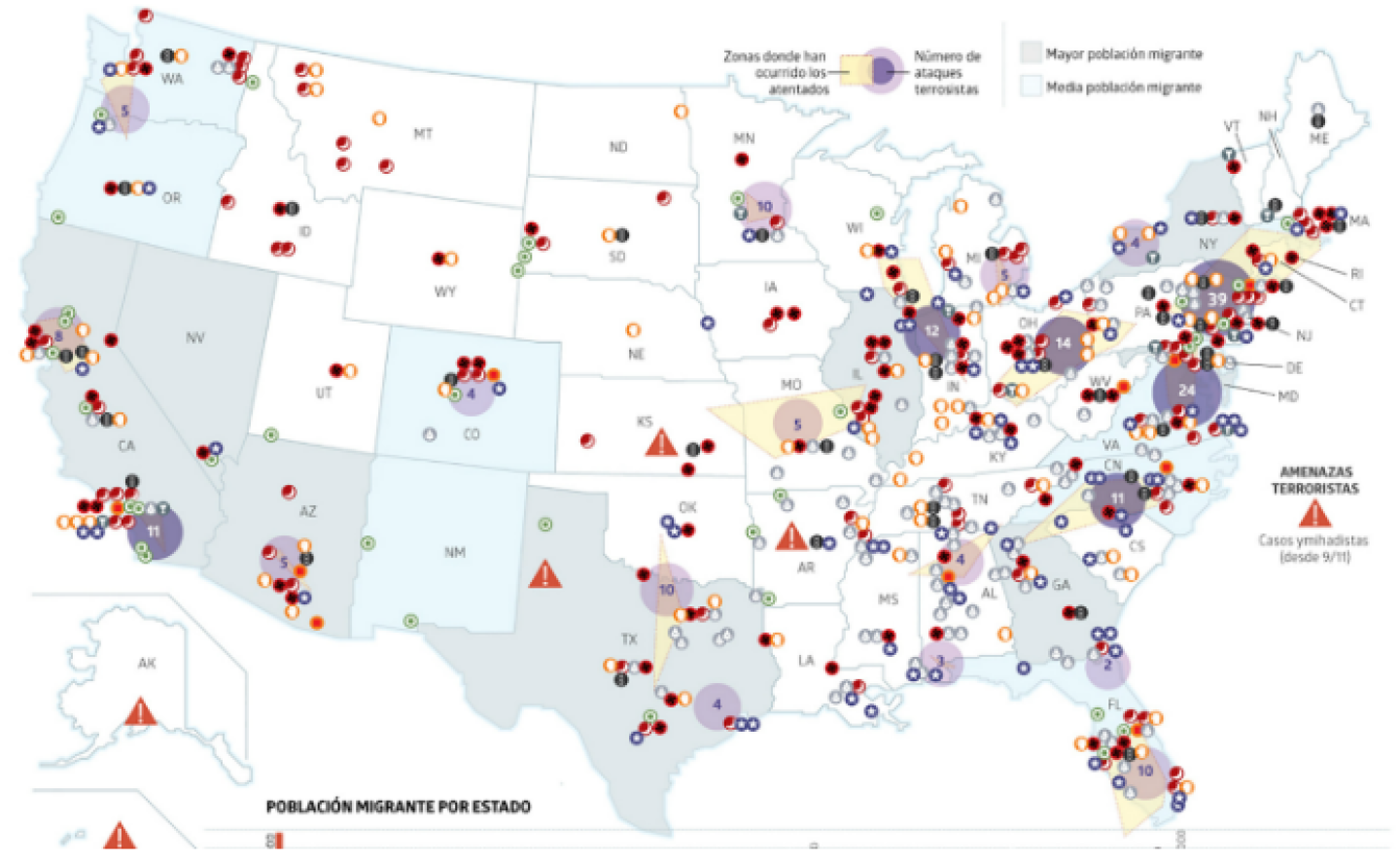 Por ello, continúan las investigaciones para demostrar que la frontera sur forma parte de los planes de grupos como el Estado Islámico, Al Qaeda o el Jabhat al-Nusra o Jabhat Fateh al Sham para ingresar encubiertos a Estados Unidos. Incluso, los comités encargados de legislar en materia de seguridad interna desde la Cámara de Representantes han tenido complicaciones para documentar estos hechos. Según el reporte denominado Mapa de Amenazas Terroristas, desde el 11 de septiembre de 2001, cuando integrantes de Al Qaeda atentaron contra las Torres Gemelas de Nueva York, han ocurrido 203 ataques cometidos por hombres y mujeres que juraron lealtad a grupos como el Estado Islámico, intentos de atentados y actividades que buscaban apoyar con materiales o información a “células dormidas” relacionadas a la radicalización islámica.