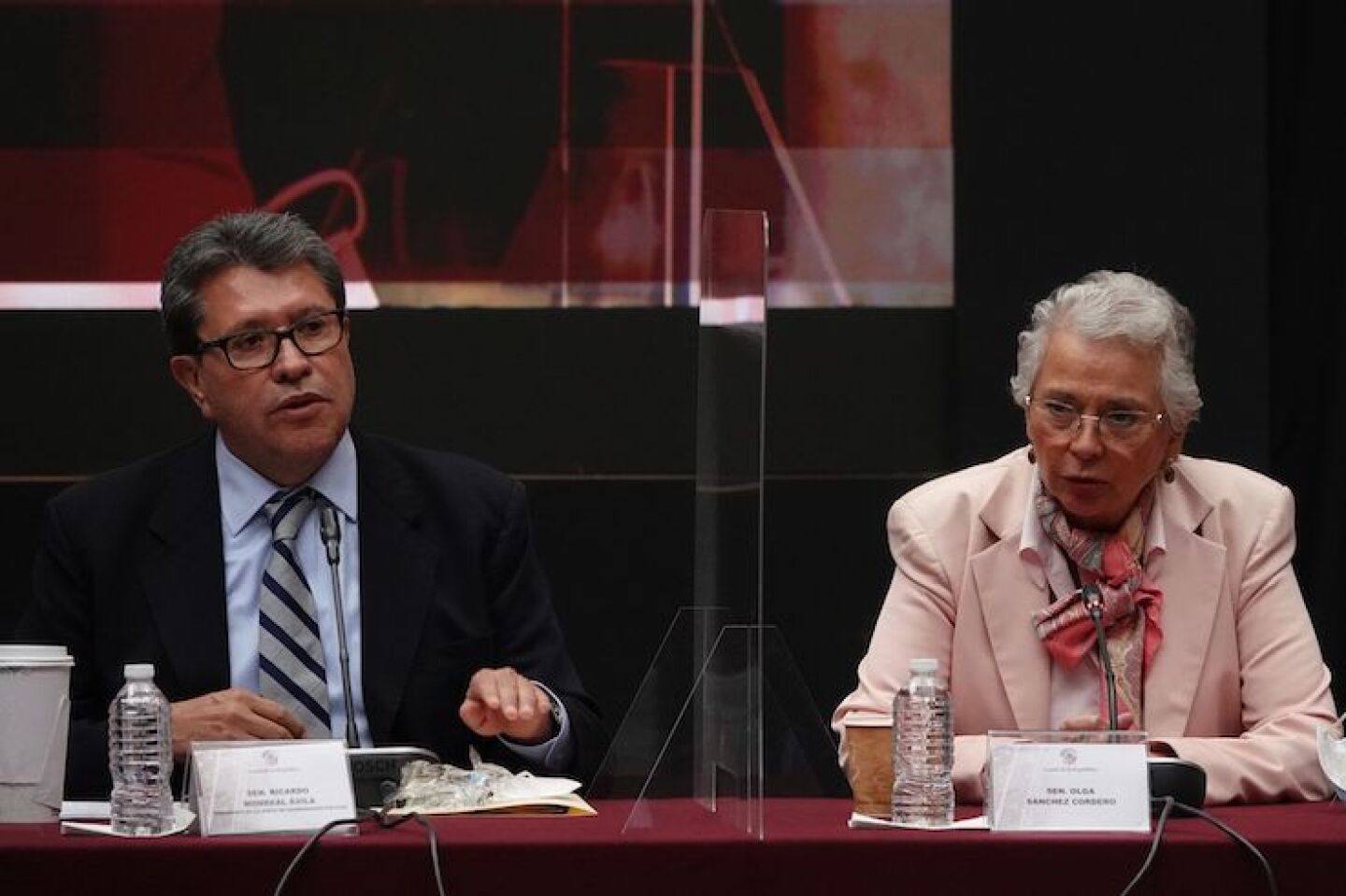 CIUDAD DE MÉXICO, 27AGOSTO2021.- Senadoras y senadores del Movimiento de Regeneración Nacional (Morena) encabezados por Ricardo Monreal, presidente de la Junta de Coordinación Política, se dieron cita en la antigua sede del Senado para llevar acabo la VII Reunión plenaria del grupo parlamentario del partido. Eduardo Ramírez Aguilar, presidente saliente del Senado, acompañó el acto en que estuvo presente la ex secretaria de Gobernación Olga Sánchez Cordero, quién ahora fue propuesta por Monreal Ávila para dirigir la cámara alta en este nuevo periodo legislativo. Durante la reunión se contará con la presencia de secretarias y secretarios federales, así como del Fiscal General de la República, Alejandro Gertz Manero. FOTO: GALO CAÑAS/CUARTOSCURO.COM