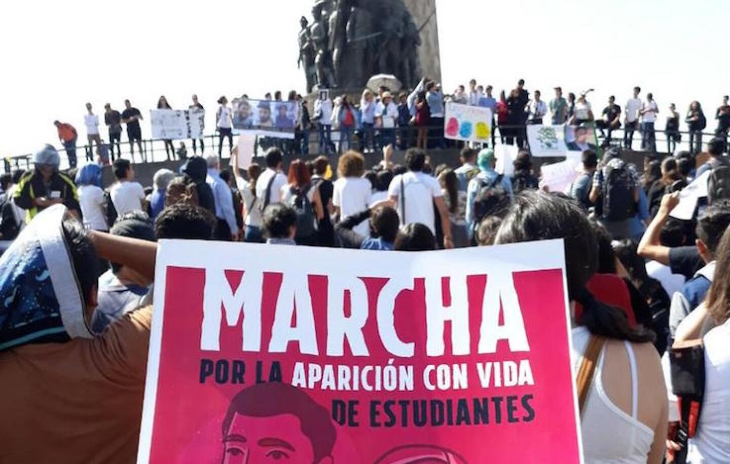 Decenas de estudiantes reclaman mayor información de su compañeros desaparecidos, al grito de "¿Donde están?”. (Con información de Milenio) FR