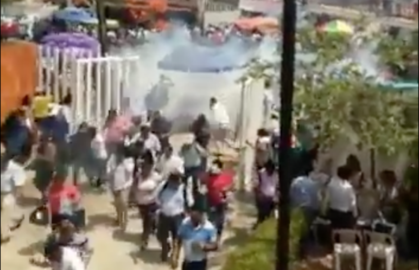 Con gas lacrimogeno, la @SSPTabasco dispersa a los maestros que exigen el derecho a un salario que ya trabajaron y con el que mantienen y alimentan a sus familias! Son siete quincenas señores! Son tres meses y medio sin recibir sus respectivos pagos! @setabasco pic.twitter.com/cJpVDls9Ud — LiliCalca (@Lilicalca) 10 de abril de 2018