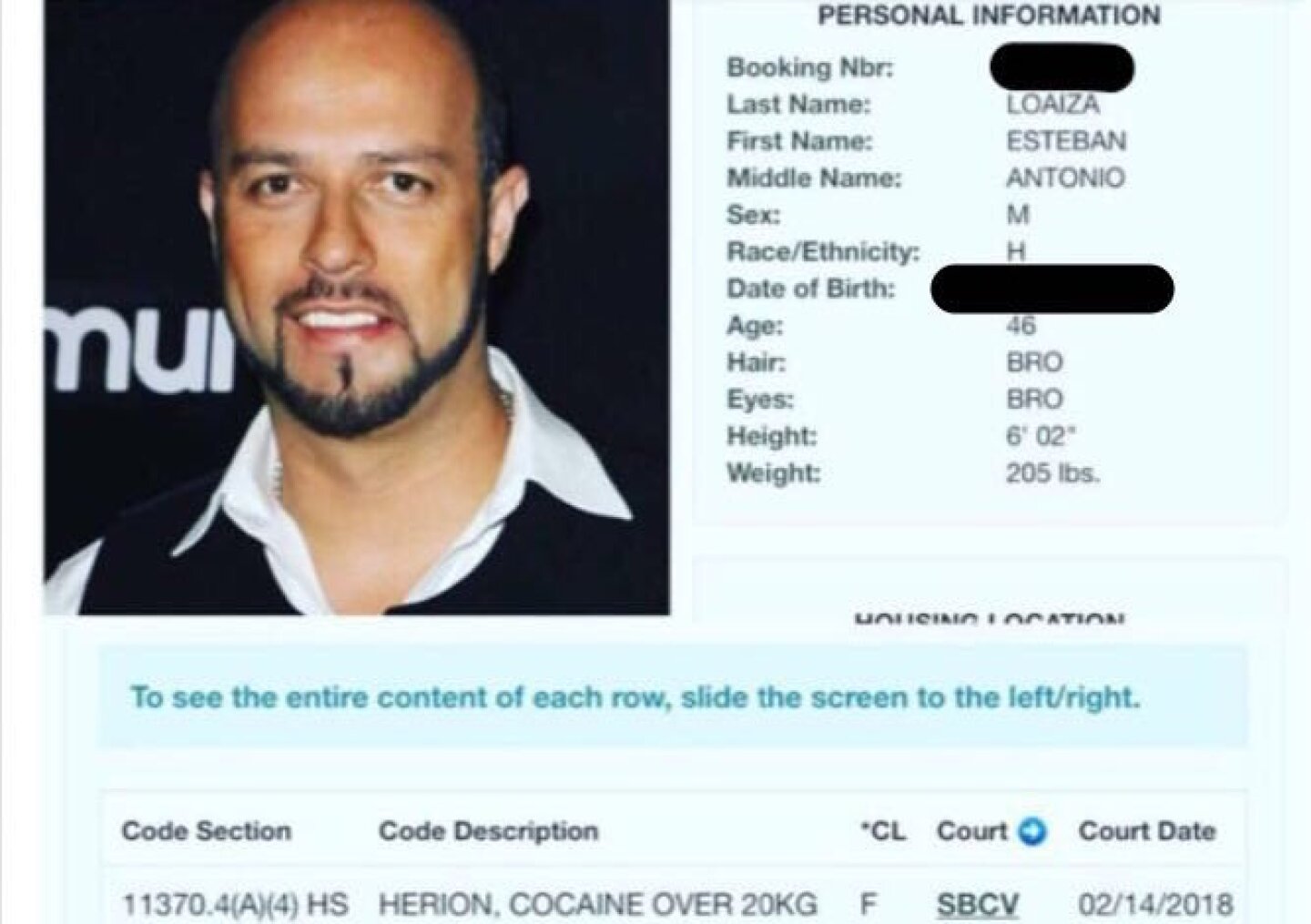 El exbeisbolista profesional Esteban Loaiza fue detenido el pasado viernes 9 de febrero en la ciudad de San Diego, California, acusado de posesión de drogas, confirmaron autoridades estadounidenses. Loaiza fue arrestado por la posesión y transporte de más de 20 kilogramos de cocaína y heroína destinada a venta, informó el Departamento del Sheriff del Condado de San Diego. Al también exesposo de la desaparecida cantante Jenni Rivera le fue impuesta una fianza de 200 mil dólares, y su audiencia tendrá lugar el 14 de febrero. El expitcher de 46 años, nació en Tijuana, Baja California, y jugó en Grandes Ligas de 1995 a 2008. Inició su andar por la Gran Carpa con los Piratas de Pittsburgh y finalizó con los Medias Blancas de Chicago. Invitado en 2003 y 2004 al Juego de Estrellas, siguió su carrera en la pelota veraniega de México con los Diablos Rojos del México. Se casó con Rivera en el 2010. La muerte de la cantante, en un accidente aéreo en el 2012, ocurrió durante su proceso de divorcio. El tijuanense se encuentra actualmente detenido en centro de South Bay de Chula Vista, California. (Con información de Milenio y ) FR