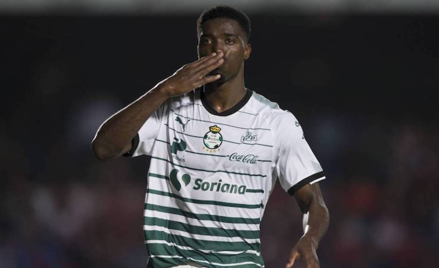 El delantero caboverdiano de Santos adelanta al puma Nicolás Castillo, con 14 dianas