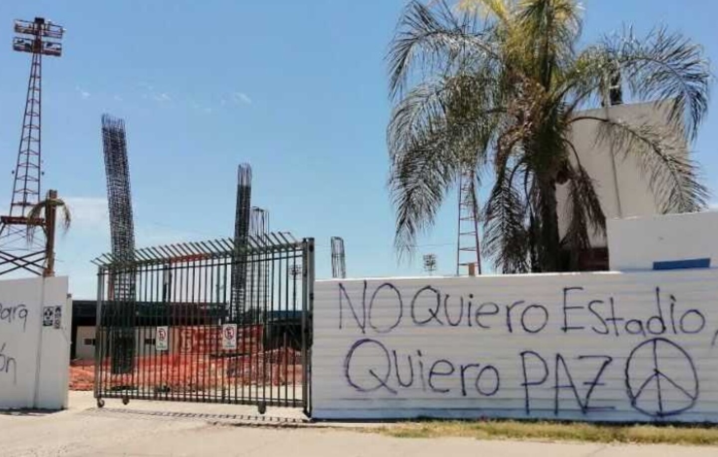 Las consignas “No quiero estadio, quiero paz para Obregón” y “Paz para Obregón” amanecieron pintadas en los muros del estadio en remodelación.