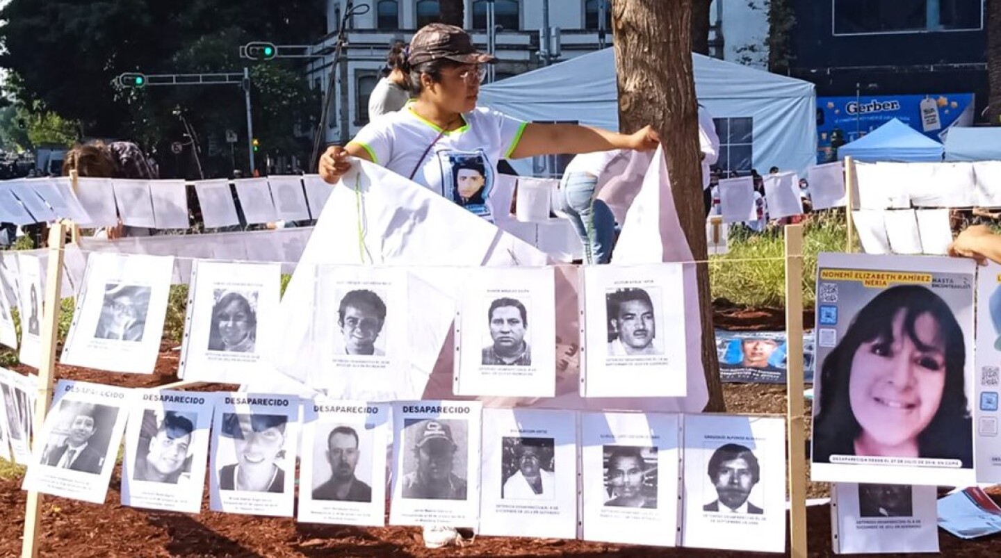 Los manifestantes cuestionaron a la jefa de Gobierno de la Ciudad de México, Claudia Sheinbuam, por no permitir que la glorieta se transformara en un recordatorio de las más de 100 mil personas desaparecidas en el país.