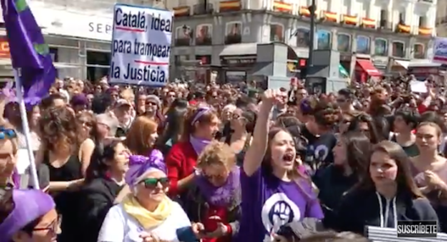 Durante los festejos del Día de la Comunidad de Madrid este 2 de mayo, España enfrentó nueva ola de protestación contra la tenue condena de La Manada, el grupo de agresores sexuales que difundió imágenes de sus fechorías durante la feria de San Fermín del año 2016. La decisión judicial, que sólo consideró un delito de abuso sexual- y no de agresión- provocó la indignación de grupos feministas y de asociaciones que se extendió a la esfera política y obtuvo una amplitud muy relevante. El Presidente del Gobierno regional en funciones, Ángel Garrido, pronunciaba su tradicional discurso en la Plaza Mayor madrileña, centenares de manifestantes acudieron con banderas y carteles, para apoyar la víctima de lo que consideran agresión y obtener una pena mayor para los delincuentes.